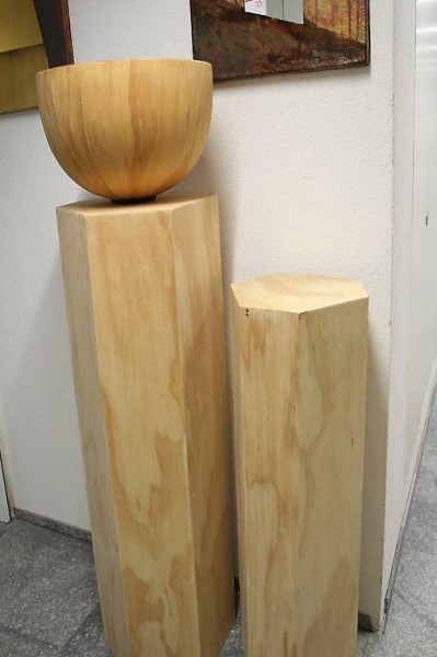Säulen / Sockel , Holzdécor auf Fiber, sechseckig (ideal für Ausstellungsobjekte), Holzdécor ist nature, kann ggf. individuell eingefärbt werden