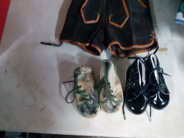 Ein ältere kleine Lederhose mit 2 paar Schuhe für Kleinkind