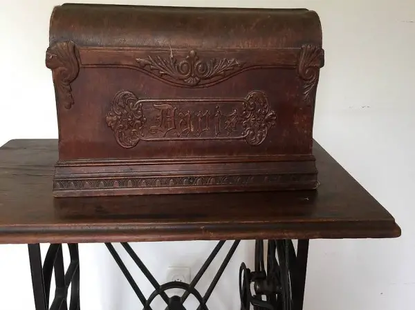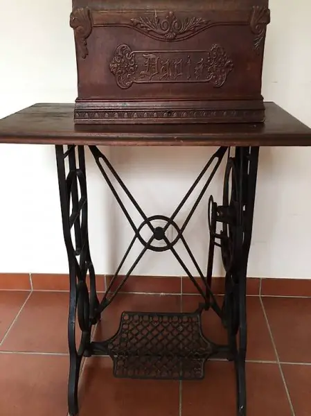 Macchina da cucire antica con supporto