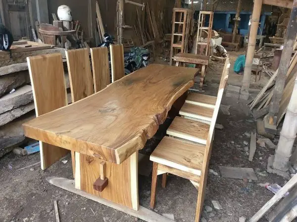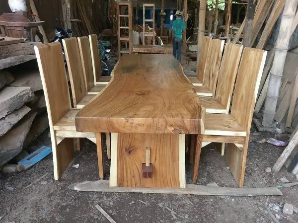 Set with 6 x chairs and 1 x Soar wood table, Asian oak is also made by hand in Bali