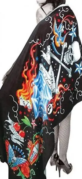Mit diesem Handtuch bist Du der Held eines jeden Freibades oder Badestrands! Auf schwarzem Hintergrund ist es knalllbunt mit Totenköpfen, Kirschen, Würfeln, Schwalben, Rosen, einem Spinnennetz und vielen anderen tollen Sachen bedruckt.