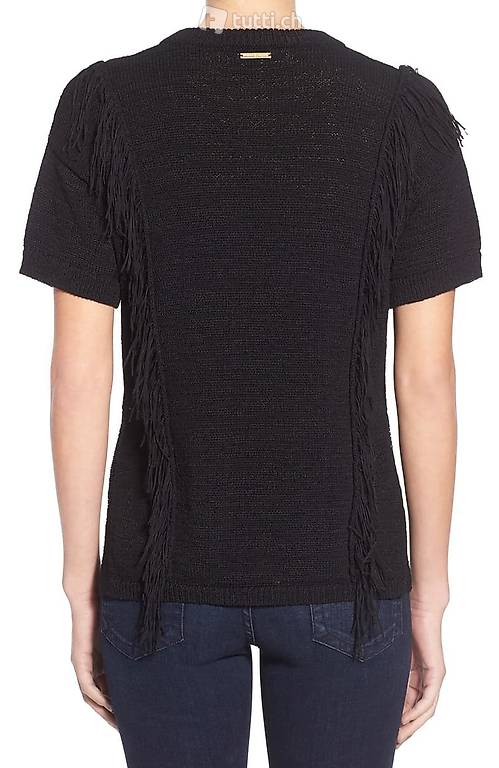 Michael Kors Short-Sleeve Fringe-Trim Sweater/