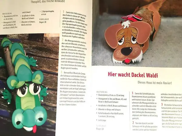 Viele tolle Ideen zum Basteln mit Baumstämmen, inklusive allen Schnittmustern.