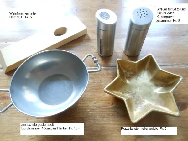 Weinhalter, Streuer, Zinnschale, Sternschale Fr. 4.- bis 10.-