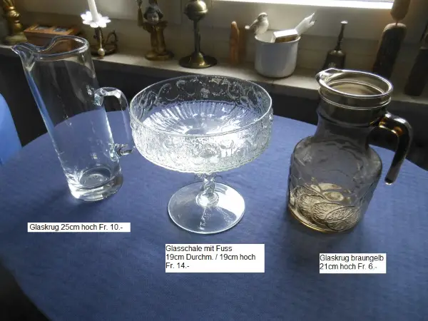 Glaskrüge, Glasgeschirr Fr. 2.- bis 10.-