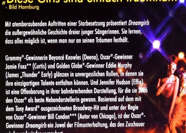 Eine atemberaubende Geschichte dreier jungen Sängerinnen. Ein Musikfilm mit Starbesetzung. - Lesen Sie bitte auch die Beschreibung auf der dritten Foto.