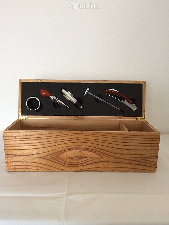mit Magnetverschluss, neu mit Zubehör für Weinservice für 1 Flasche 75cl. Länge 36cm, Breite 11.5cm, Tiefe 13cm, mehrere vorhanden