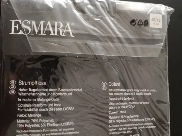 MATERIAL : 76% POLYAMID. 19% POLYESTER. 5% ELASTHAN (LYCRA).