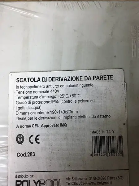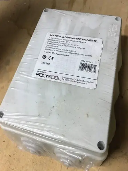 Scatola di derivazione da parete, ancora imballata.