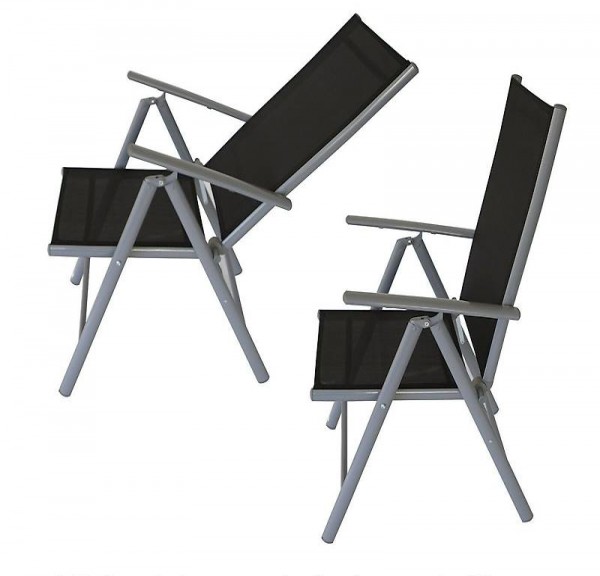 4x Klappsessel RAVENNA 7-fach verstellbar. Aluminium grau + Textilgewebe schwarz.<