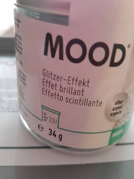 Ich habe noch einen neuen Farbeimer mit oder ohne Glitzer Effekt.