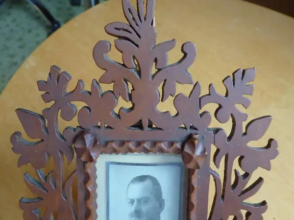 dieser ( Laubsägeli )-Ramen ist 20cm. Breit und 22,5cm.hoch in schönem Zustand.