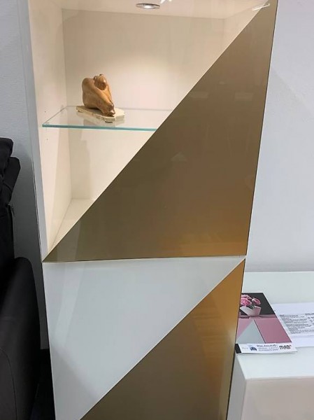Das Glas ist in Mattglas reinweiss bzw. die Absetzungen in Mattglas optiwhite Gold