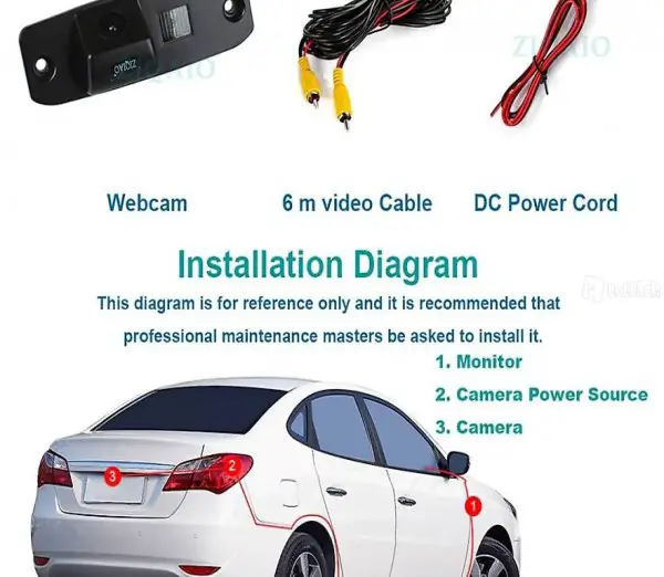 4. Schliessen Sie das Netzkabel (rot und schwarz) an das Rücklicht-, Rückwärts- und Rückwärtssteuersystem des Fahrzeugs an