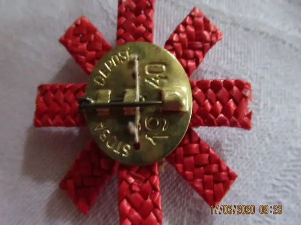 ein weisses Kreuz Strohgeflecht, mit rotem Hintergrund ebenfalls Strohgeflecht
