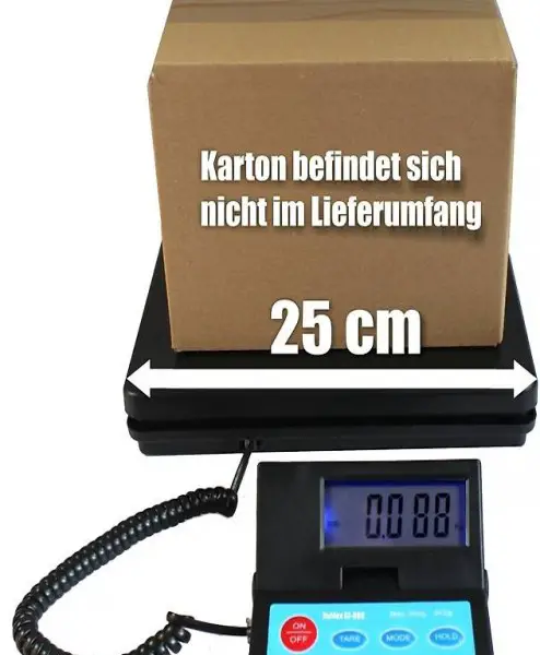 25x25 cm Wägeplatte. Solider Stand. Tara Funktion. Wägeeinheiten: kg, g, oz, lb