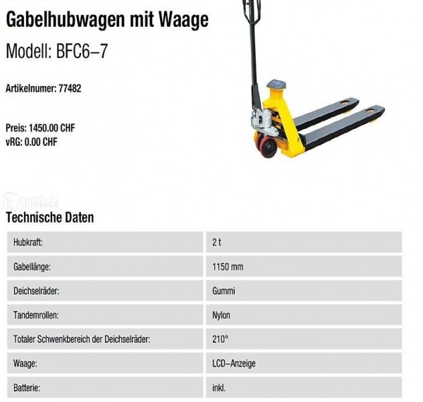 Gabelhubwagen / Palettrolli mit Waage - 77482
