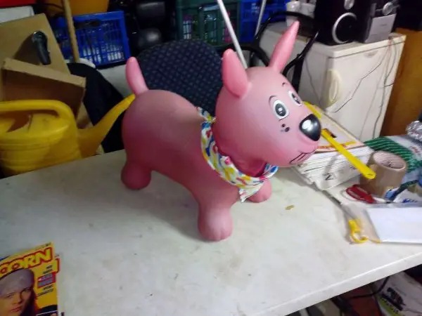 Ein älterer grösserer Spielzeughund für Kinder Gummi