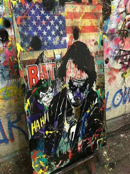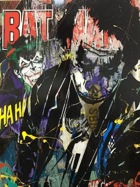 Atelier, wo er faszinierende Collagen kreiert seine liebsten Figuren sind zB Bart, Homer, Marge, Lisa, Joker, Milhouse, Krusty Simpsons,