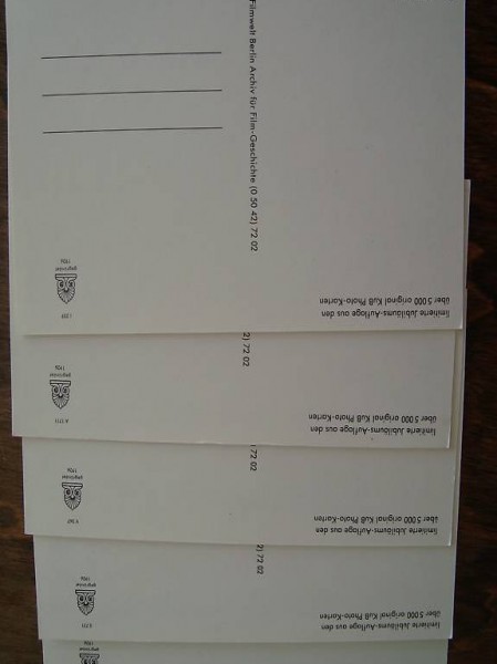 Limitierte Jubiläums-Auflage aus den über 5000 original KuB Photo-Karten. Von "KuB / Filmwelt Berlin Archv für Film-Geschichte" hergestellt.