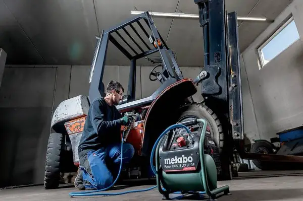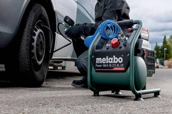 Mobiler Akku-Kompressor von Metabo. Kompatibel mit den 18V-Akkupacks, 8 bar Maximaldruck, 60 l/min