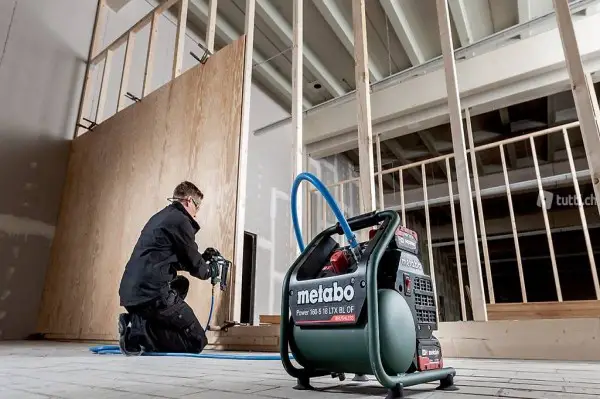 - Leichter und leistungsstarker Akku-Kompressor mit Brushless-Motor für den Einsatz im Innenausbau und auf Baustellen
