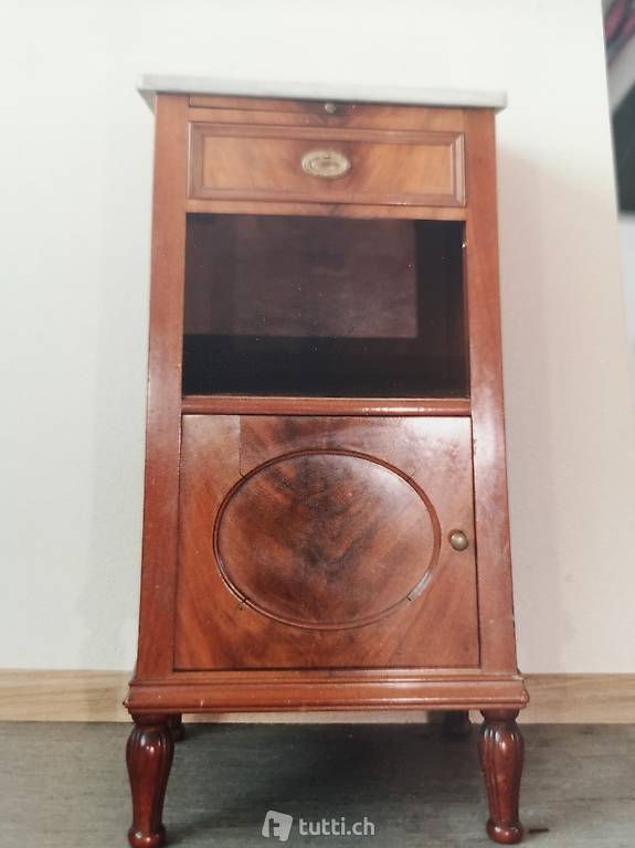 . Waschkommode sowie Nachttiscli mit Marmor