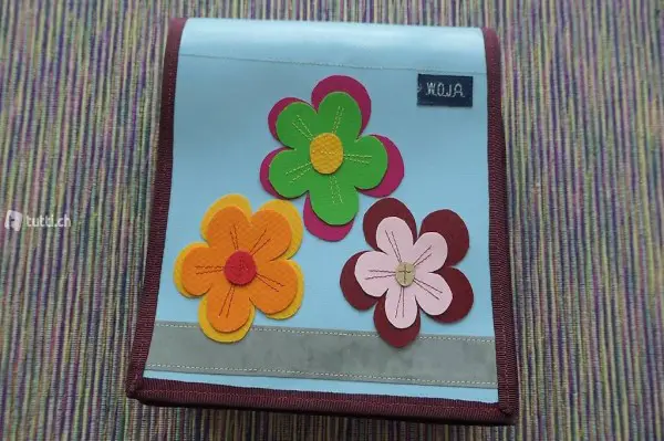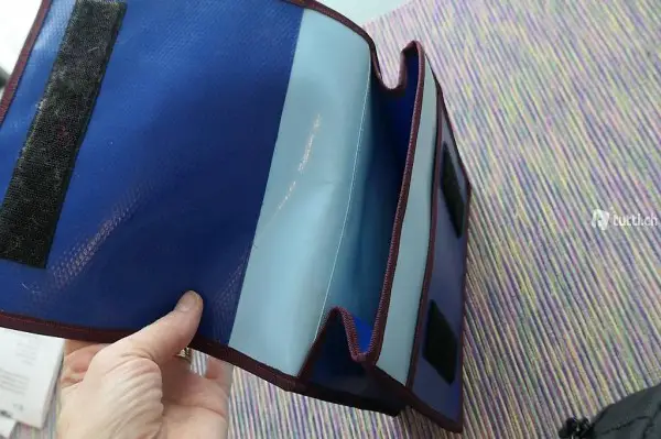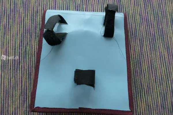 oder Velo. Die Tasche kann mittels Klett befestigt werden. Siehe Foto.