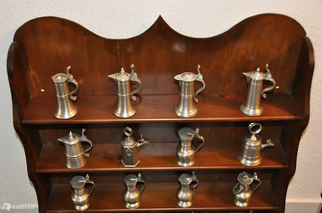 Setzkasten Kantone Zinnkannen Baehler Feinzinn antik