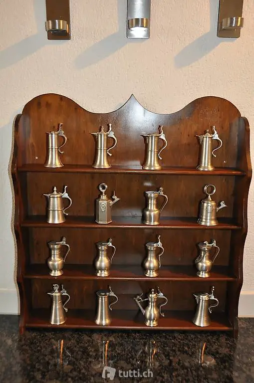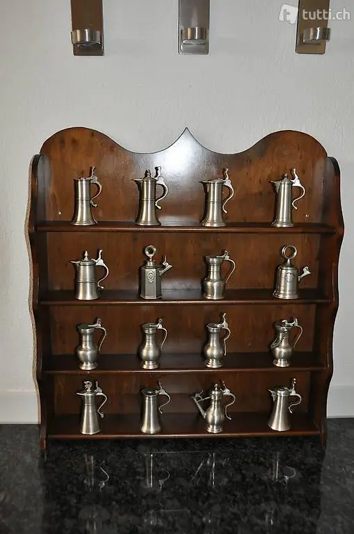 mit 16 Kantons-Zinnkannen Miniatur, auf antik gegossen, 95% Feinzinn .