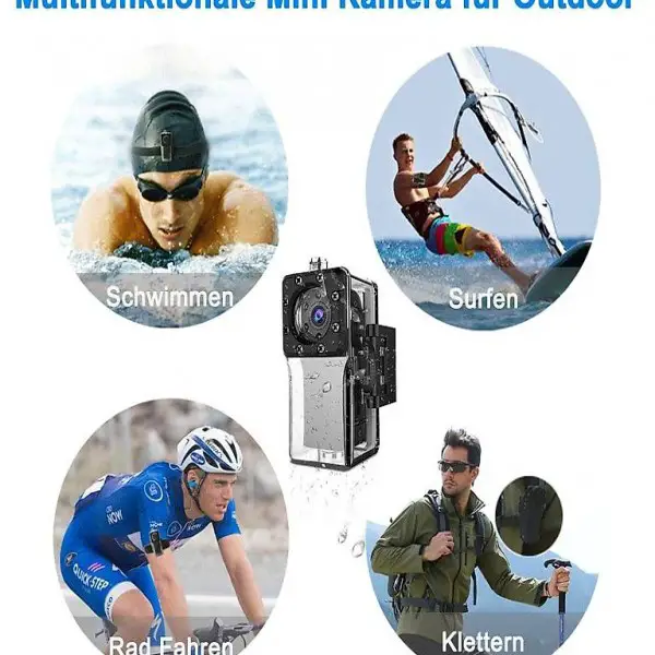 Kunststoffgehäuse und viele andere Zubehörteile, die es ideal für den Einsatz als Outdoor Mini Sport DV macht, wie Skifahren im Winter und