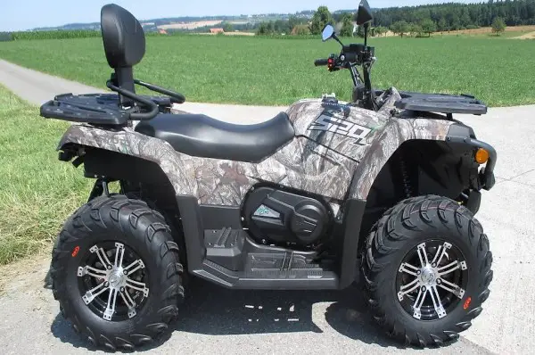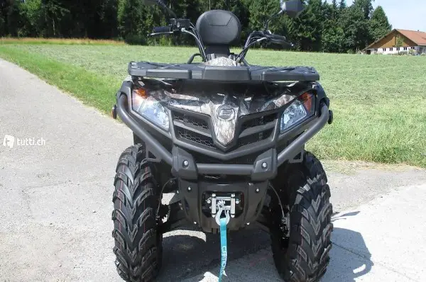 Seilwinde, AHK mit Stecker, Alufelgen, Lange Ausführung mit Rückenlehne, Autobahnzulassung, Differential vorne und hinten, 4x4 zuschaltbar, gute Durchzugskraft, Gepäckträger vorne und hinten. Auch in den Farben orange, schwarz, camo, mit EPS ab Lager lieferbar.
