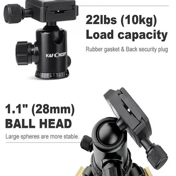 -360°Panorama-Der Kugelkopf mit Gradskala ermöglicht eine 360° Panoramadrehung und die optimale Ausrichtung im Hoch- und Querformat; Kugelkopf mit 28 mm Durchmesser ist mehr stabiler und mit dem neue ölfreie Dämpfung-Design kann die