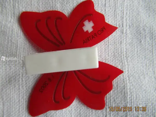 1. August - Abzeichen 2002, Plakette, anstecker, Pro Patria, von 2002, Schmetterling, Sommervogel