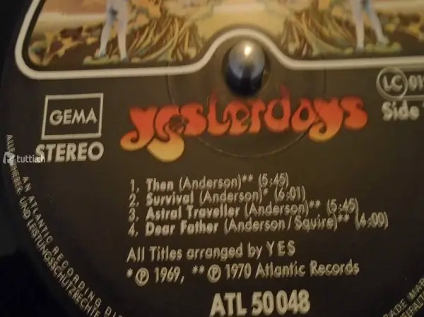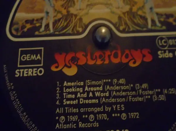 Erste Deutsche Pressung, 28 Februar 1975. 1ste Compilation und 9tes Album, 1969-1970-1972 von der Britische Band Yes. Yesterdays mit Bill Bruford, Alan White (