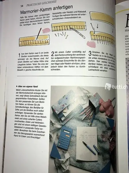 Mit Schnittzeichnungen zum Abpausen.Der grosse Bastelspass für Jung und Alt. In diesem Buch finden Sie unzählige Ideen für originelle Partygeschenke, kleine Mitbringsel und liebevoll gestaltete Accessoires. Sie erhalten eine Vielzahl von Anregungen für Bastelnachmittage mit der ganzen Familie und Kindergeburtstage. Neben zahlreichen neuen Kreationsideen entdecken Sie auch Traditionelles und Nostalgisches..beliebte Partygeschenkeschmuckes Blechschwimmende Kerzenduftende Bienen Wachskerzen Duftkörbchen und Pomander,geformte Gestecke duftender Lavendelpapierfiligran-Mobile orgninelle Reliefbilder ,Praktische Geschenke,Heisse Töpfe fest im Griff, blüten im GobelinstichTrio in Gobelinstickerei ,Flechtwerk aus Papier., Badetaschen,Geschenkkorbideen Marmorieren von Papier, geschenkutensiliengeschenkte Zeit ,Duftkissen Glänzende Verpackungsideen,PräsenthüllenPräsentka?