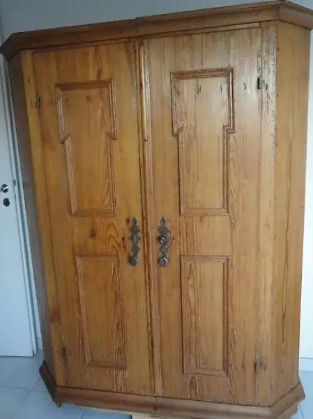Tannenholz massiv, unbehandelt, innen Tablare, können aber auch mit Kleiderstangen ersetzt werden ideal auch