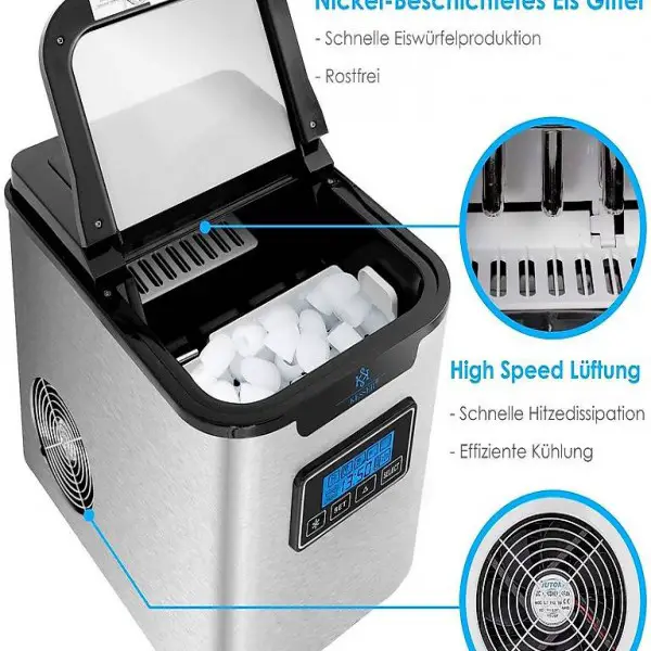 150W Ice Maker | 12 kg 24 h | 3 Würfelgrössen | Zubereitung in 7 min | 2,2 Liter Wassertank | Timer | LCD-Display | Selbstreinigungsfunktion