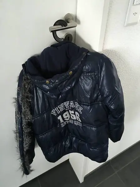 Zu verkaufen neuwertige Winterjacke in Grösse 140 in coolem Retro Style. Der Kunstpelz Kragen kann abgenommen werden, siehe Foto.