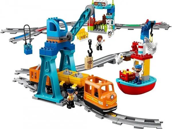 Contient un chef de train de fret, un capitaine et un commerçant en chiffres LEGO DUPLO et une mouette en chiffre animal supplémentaire