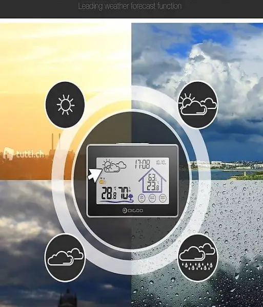 IN & OUT Temperatur und Luftfeuchtigkeit (° C / ° F) , 12/24 Zeit & Kalender , Max & Min Temperatur- / Luftfeuchtigkeitsaufzeichnung