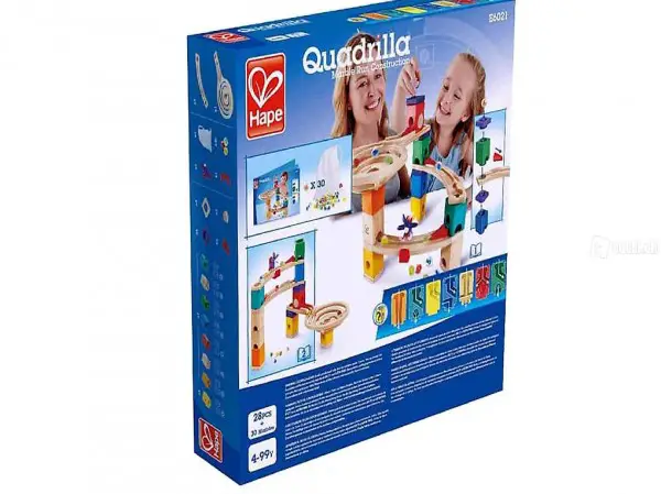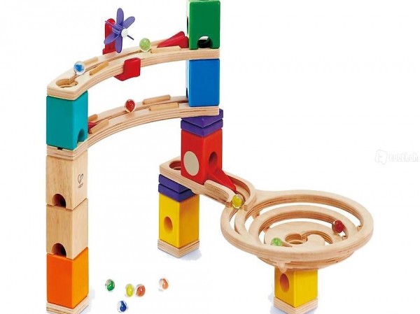 Jetzt kannst du deine eigenen Murmelbahnen mit dem Quadrilla-Einsteiger-Set bauen. Wirf zwei Murmeln in den Schacht und sieh dabei zu, wie sie auf unterschiedlichen Wegen bis nach unten flitzen. Die Kugelbahn von Quadrilla Endspurt von Hape bietet eine vielfältige und aufregende Gluggerspass. Die fein verarbeitete Kugelbahn aus Gummibaum- und Birkenholz ist für Kleinkinder geeignet und kann mit Erweiterungen immer weiter aufgestockt werden.