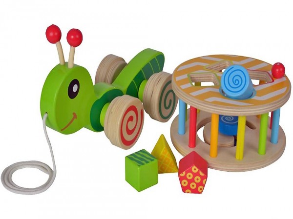 Eichhorn Color, Nachzieh-Stecktier: Das Eichhorn Color Nachzieh-Stecktier bietet den kleinen Kindern ein tolles Spielvergnügen. Man kann das Nachzieh-Stecktier mit einer Schnur bespielen, dadurch rollt und klappert das aufgesetzte Steckspiel toll oder man nimmt das Stackspiel ab und bespielt dieses Einzeln. Auf der einen Seite des integrierten Steckspiels findet sich ein Motorikspiel, welches die Wahrnehmung von Farben und Formen der Kleinen entwickelt sowie ein Steckspiel. Die 4 Steckbausteine haben verschiedene Formen, und jede Form passt nur in die jeweils vorgesehene Öffnung. Dreht man das Steckspiel auf die Seite, rollt es über den Boden und die Steine im Inneren wirbeln durcheinander. Eine Steckverbindung mit elastischem Gummi bietet die Möglichkeit die Steine aus dem Inneren wieder herauszuholen nachdem sie durch die Öffnungen gesteckt wurden.