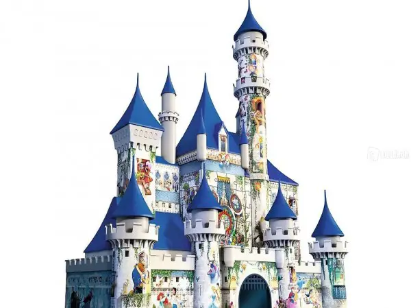 puzzle. Le grand château de puzzle 3D contient plus de 100 des fantastiques héros de Disney.