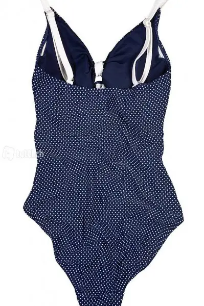 Schwimmanzug für Schwangere: Navy mit weissem Pünktchen, abgesetzt mit zarten weissen Details, so macht dieser Einteiler die Vorfreude auf das