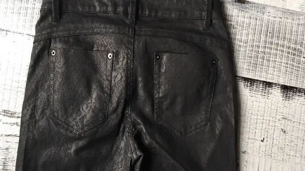 hose wurde gewaschen und zu hause kurz getragen. sie hat eine lederoptik (beschichtet und glänzig) mit feinem muster (sehr dezent und elegant). passt für konfektionsgrösse 34 oder 36 da sie elastisch ist. verkaufe noch levis, pepe jeans, g-star, tommy hilfiger u.s.w. postversand 7.-
