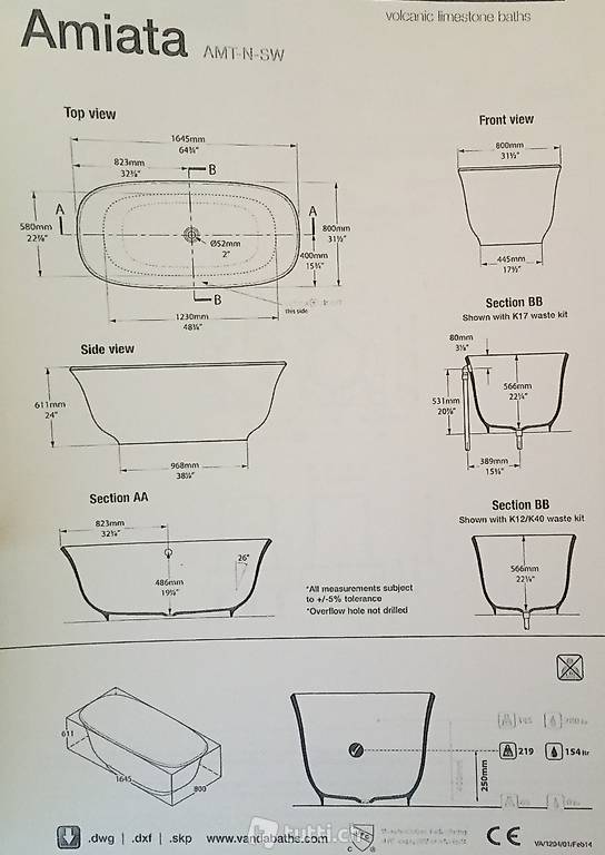 Badewanne Amiata Victoria+Albert (auf Wunsch mit Badebatterie MONTREUX