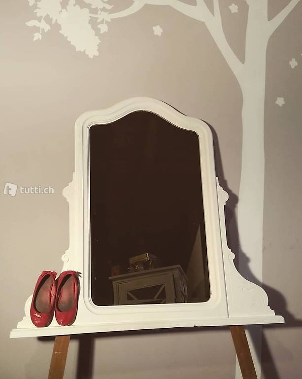 Spiegel, mit Kreidefarbe in cremeweiss gestrichen. dank den Verstrebungen als Aufsatz für