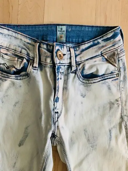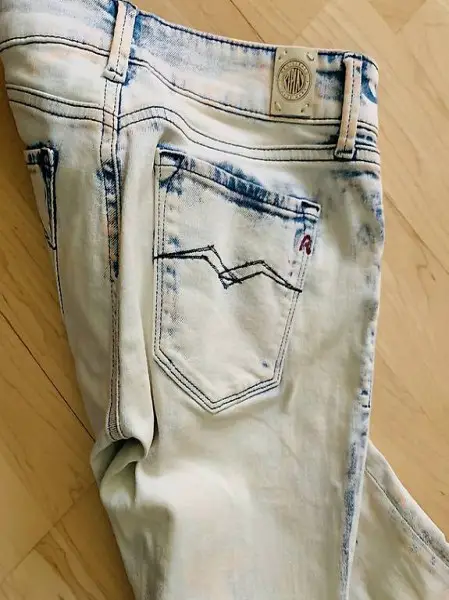 Jeans an. Tolle Farbe/Muster. Grösse 24