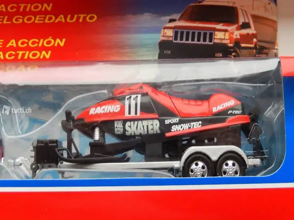 super schönes Modell - ein Truck mit Anhänger und einem Snow Skater in Originalschachtel - gemäss Fotos 1:43 - Versand möglich !